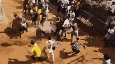 Những con bò chạy tán loạn trong cuộc thi thuần dưỡng bò đực tại Ấn Độ, một số con "tức giận" lao thẳng vào đám đông, húc văng nhiều người.