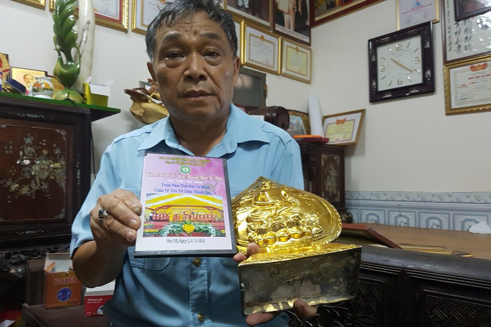 Bỏ ra hàng chục triệu đồng tham gia lễ dâng hương, nhiều phật tử ngỡ ngàng nhận về tượng đồng mạ vàng Đức Thánh Trần, Phật Hoàng nhồi xi măng.
