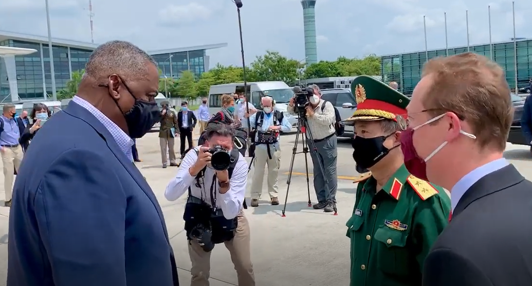 Theo Đại sứ quán Mỹ tại Hà Nội, Bộ trưởng Quốc phòng Mỹ Lloyd Austin III đã đến Việt Nam chiều 28/7. Trung tướng Vũ Chiến Thắng, Cục trưởng Cục Đối ngoại, Bộ Quốc phòng Việt Nam đã đón tiếp Bộ trưởng Quốc phòng Mỹ.