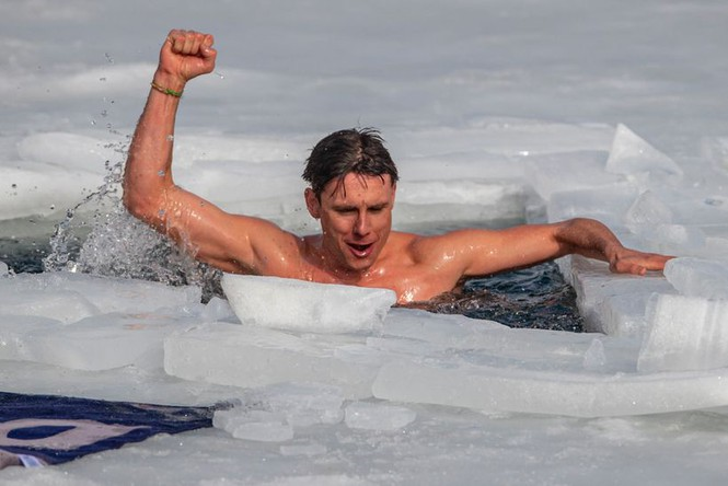 David Vencl, vận động viên bơi lội (Cộng hòa Séc) vừa hoàn tất chặng bơi 81m dưới mặt hồ băng và xác lập kỷ lục thế giới ở hạng mục này.