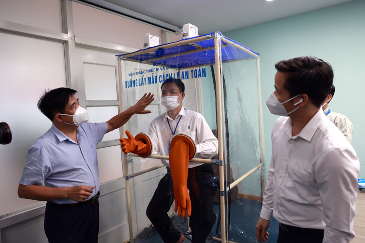 "Buồng lấy mẫu cách ly an toàn" mất 5 phút để lắp, dựng phần buồng và 10 phút dựng phần khung, phục vụ cho lấy mẫu xét nghiệm COVID-19.