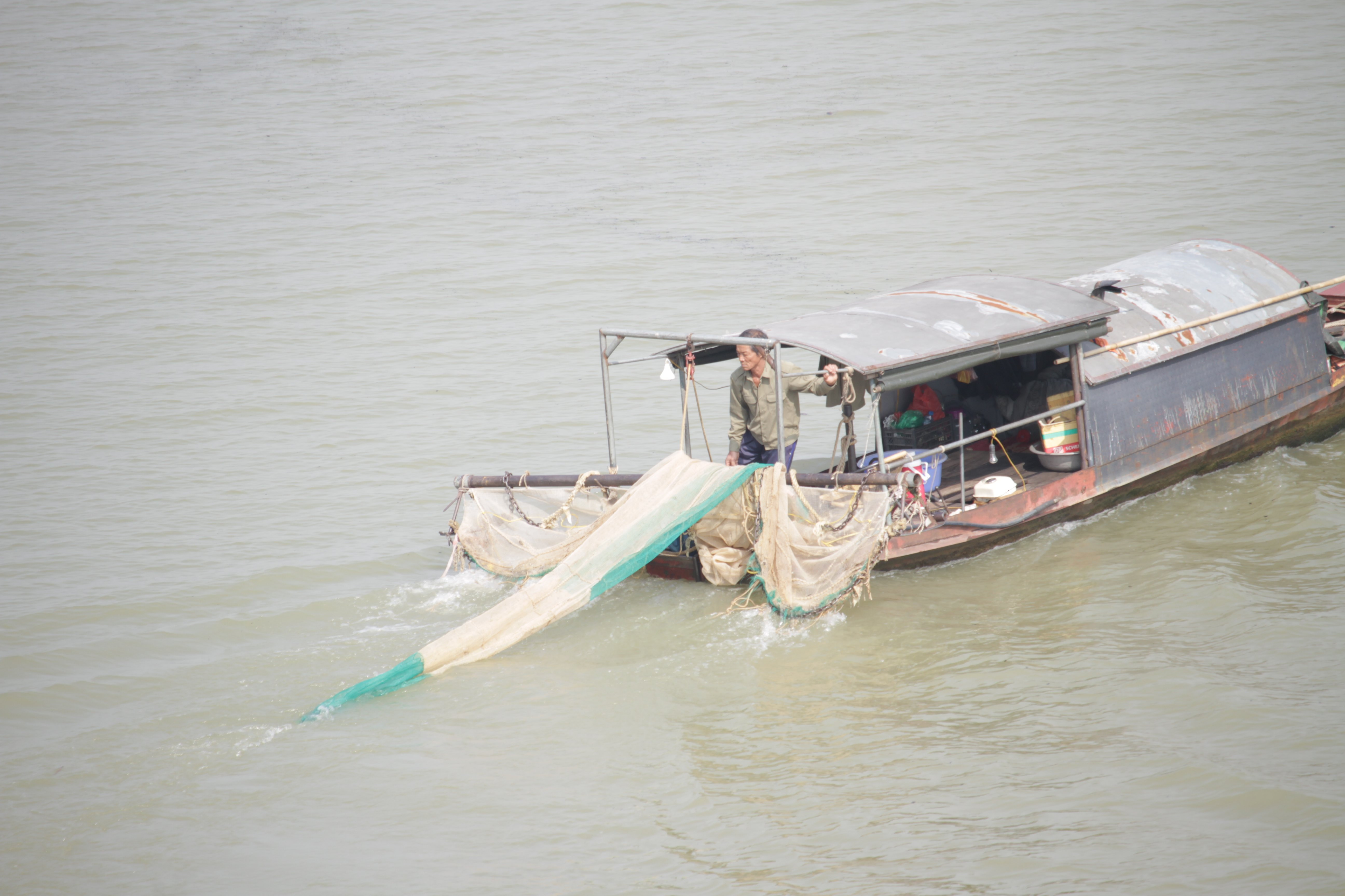 Lợi dụng việc nhiều người thả cá chép tiễn ông Táo vào ngày 23 tháng Chạp, một số người tranh thủ thả lưới bắt cá phóng sinh ngay dưới chân cầu Long Biên (Hà Nội).