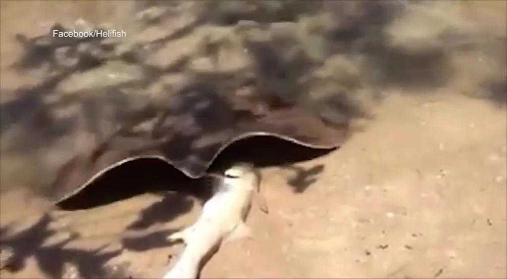(VTC News) - Một hướng dẫn viên du lịch của công ty Helifish câu được một con cá hồi và để nó trên bãi cát gần mép nước vịnh Anson, hạt phía bắc Australia, một con cá đuối gai độc chầm chậm nổi lên trên mặt nước đục ngầu, bò lại gần và phủ cơ thể phẳng dẹt của nó lên cá hồi.