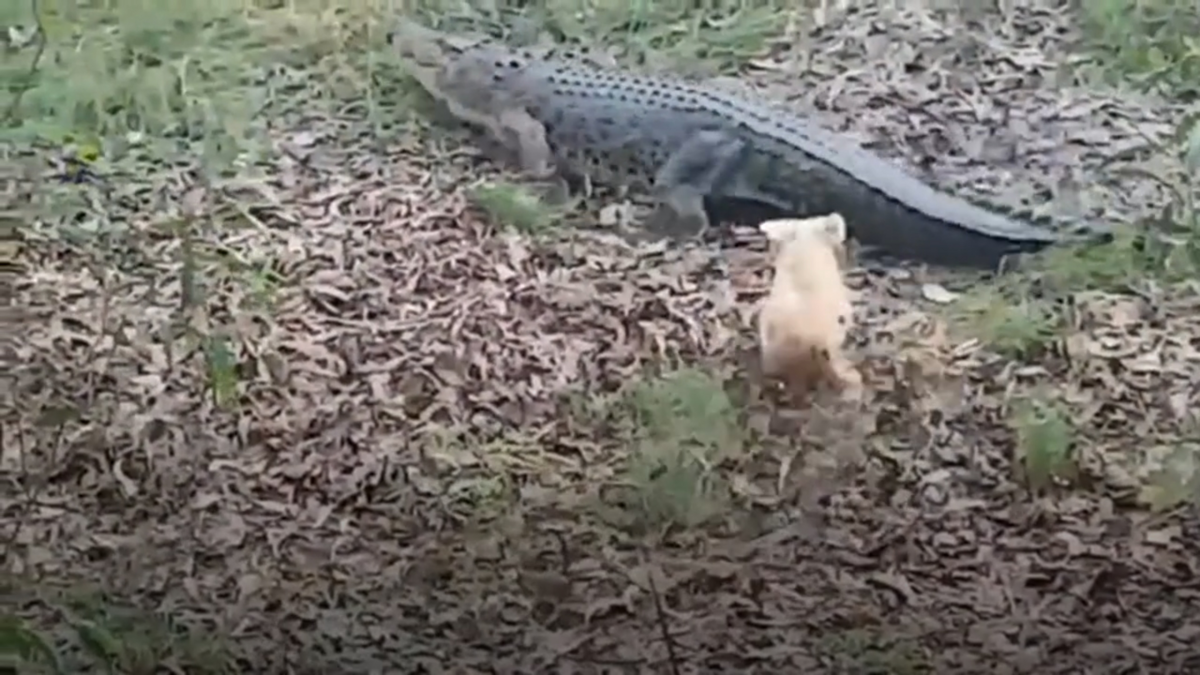 Video: Cá sấu tháo chạy khi bị chó nhà tấn công