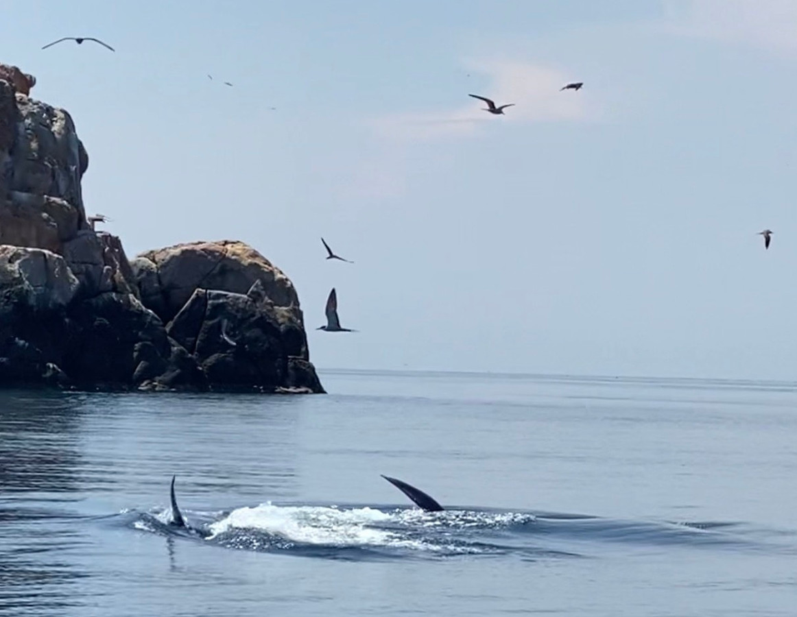 Hai con cá voi xanh xuất hiện ở Hòn Trâu (Phù Cát, Bình Định) hơn 3 giờ, khiến du khách vô cùng thích thú.