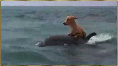 Sau khi vô tình ngã xuống biển và may mắn được cá heo cứu, chú chó vẫy tay tỏ lòng biết ơn khiến cá heo dường như cũng cảm thấy hân hoan tràn ngập.