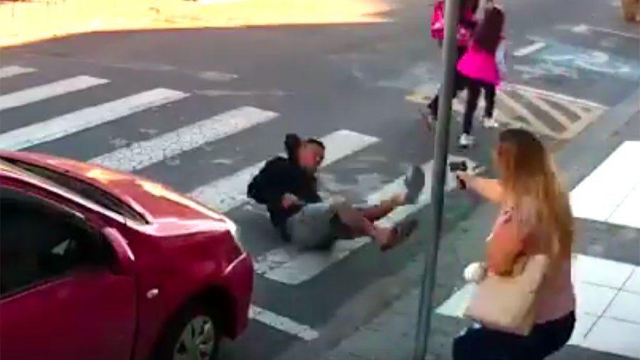 Bỗng nhiên một người phụ nữ trong đám đông rút súng và nã đạn vào tên cướp, sau đó tiến lại gần và tước súng của tên này. Người phụ nữ nói trên có tên Katia da Silva Sastre, sự việc xảy ra khi cô đang đưa con gái 7 tuổi của mình tới trường tham dự sự kiện Ngày của Mẹ tại Sao Paulo, Brazil. Tên cướp chết sau khi được đưa đến bệnh viện Santa Casa de Suzana do bị thương quá nặng.