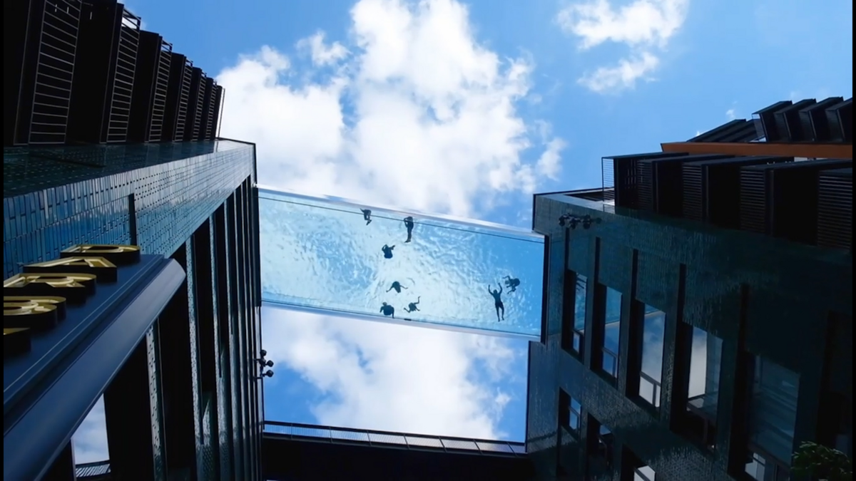 Video: Cận cảnh bể bơi xuyên thấu giữa không trung đầu tiên trên thế giới