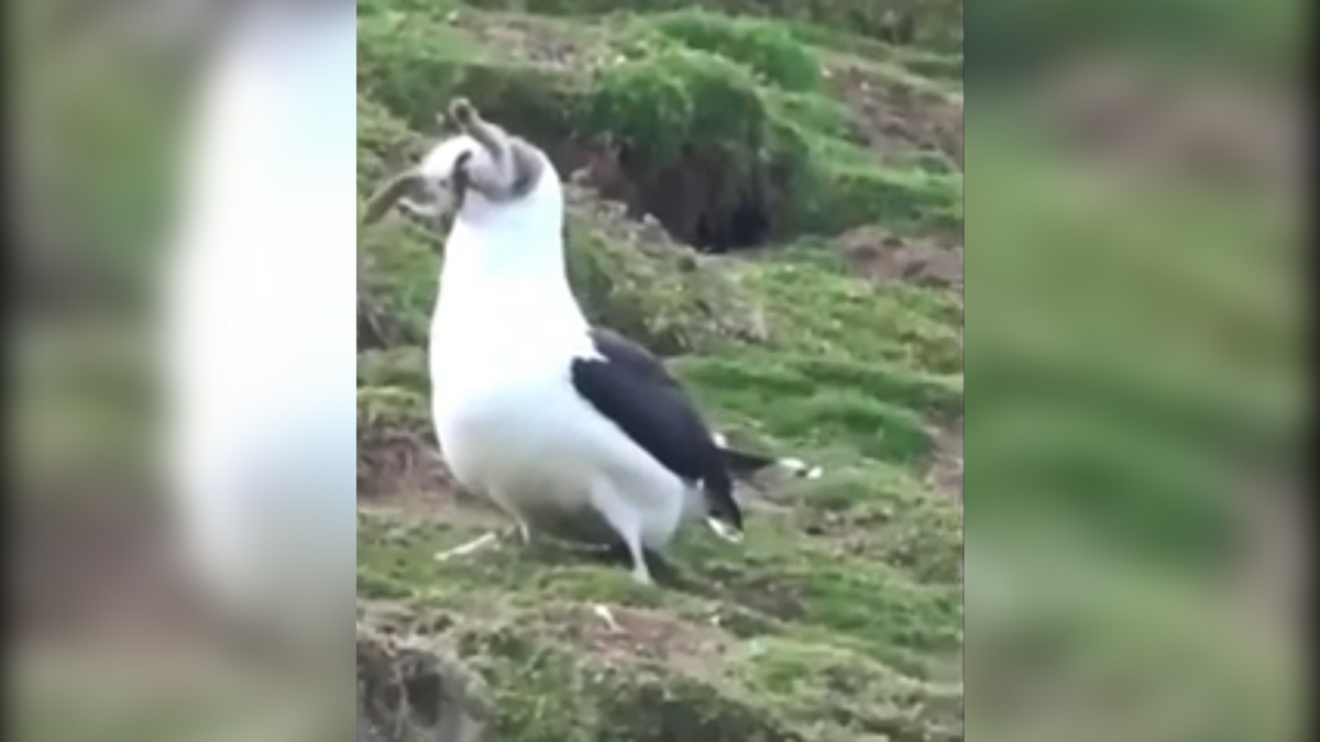 Sau vài giây, cẳng chân sau của con thỏ biến mất dưới cổ họng chim hải âu.