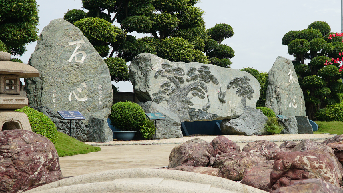 Ba khối đá nham thạch nặng 170 tấn nhập nguyên khối từ Nhật Bản được tạo hình nghệ thuật, trưng bày trong một công viên ở TP.HCM.