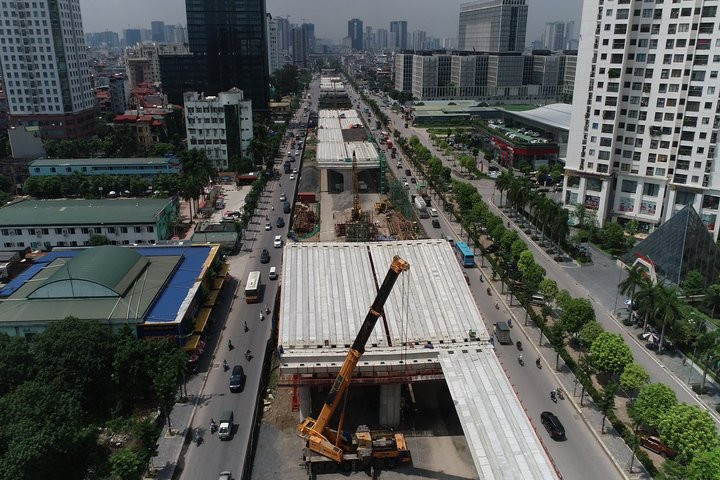 Dự án đường vành đai 3 trên cao từ cầu Mai Dịch đến cầu Thăng Long đang bị chậm tiến độ, khối lượng xây lắp sau một năm thi công mới đạt 50%.