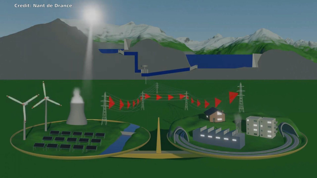 Hệ thống pin nước nằm ở độ sâu 600m bên dưới dãy Alps, Thụy Sĩ hoàn thành sau 14 năm xây dựng, có công suất lưu trữ đến 20 triệu kWh.