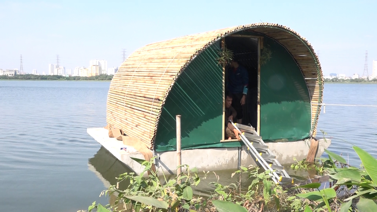 Anh Lê Trung Hiếu (Hoàng Mai, Hà Nội) thiết kế nhà vượt lũ sức chứa 8-10 người, khi nước lũ tràn về nhà tự nổi lên, nước rút sẽ hạ xuống, chi phí chỉ 25 triệu đồng.