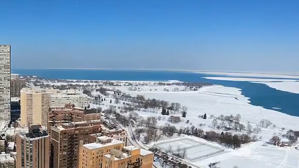 Những đợt gió mạnh, cùng thời tiết ấm dần lên khiến tảng băng lớn vỡ ra khỏi hồ Michiga, Mỹ.