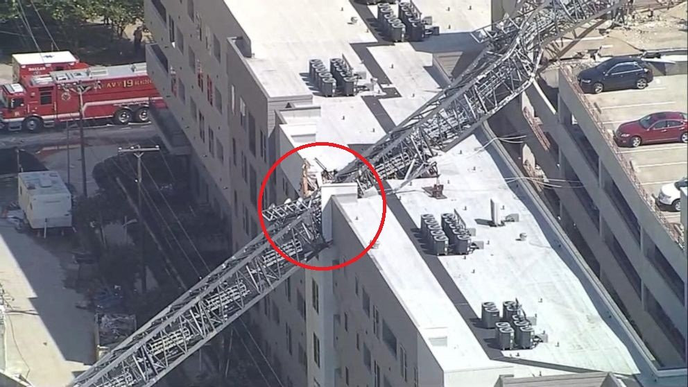Video được quay bằng điện thoại và đăng tải trên Twitter cho thấy một phần của 3 tầng trên cùng đã sụp đổ sau khi bị cần cẩu đè lên. Nhà để xe bị thiệt hại nghiêm trọng, ô tô chồng chất lên nhau giữa các tầng bị sập và lính cứu hỏa dùng cáng đưa những người bị thương ra khỏi tòa nhà.