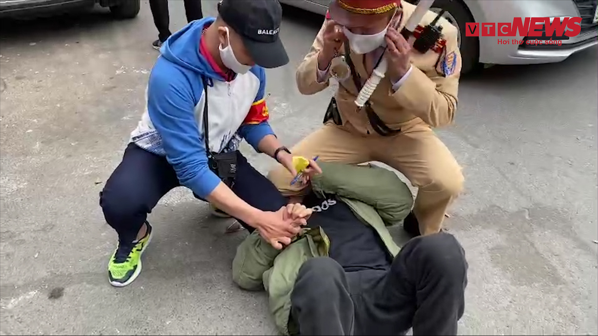 Video: Cảnh sát 141 quật ngã người đàn ông mang ma túy bỏ chạy ở Hà Nội
