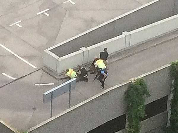 Những hình ảnh ghi lại cho thấy các cảnh sát Đức đã bao vây tất cả các khu vực, và đã có tiếng súng vang lên.