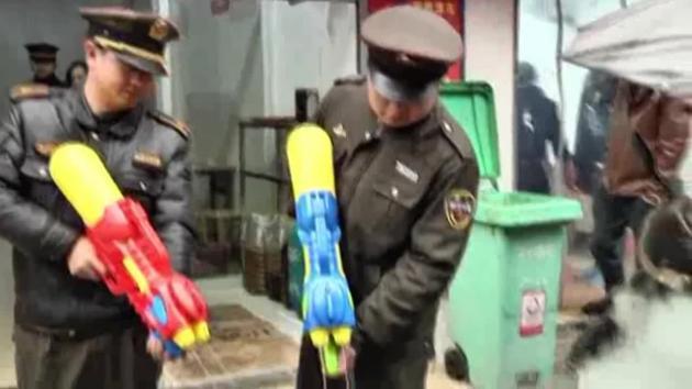Video: Cảnh sát Trung Quốc mang súng nước đi làm nhiệm vụ