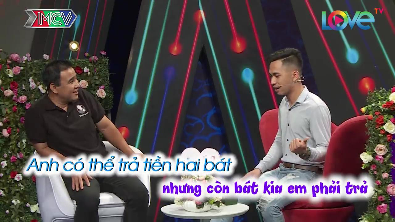 Đức Cảnh liền đặt ra tình huống cả hai đi ăn cùng nhau: "Em ăn 2 bát phở, anh ăn 1 bát là ba. Anh có thể trả tiền 2 bát, còn bát kia em phải trả, vì em đi làm rồi".