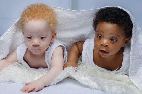 David và Daniel ở thành phố Lagos (Nigeria) là cặp song sinh nhưng một bé sở hữu làn da trắng và tóc vàng, bé còn lại có da đen và tóc xoăn.