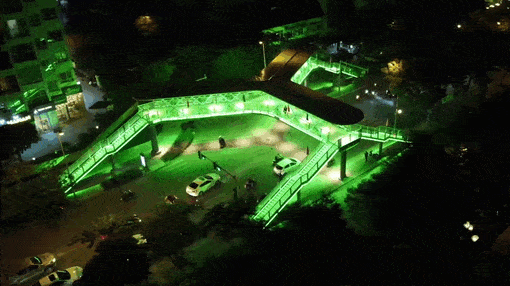 Đơn vị thi công lắp đặt đèn led đổi màu để chiếu sáng vào ban đêm trên cầu vượt chữ Y quận Thanh Xuân, Hà Nội nhằm tạo cảnh quan, phục vụ người dân.