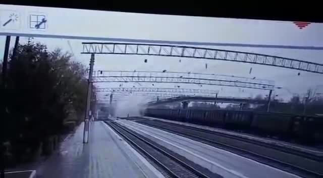 Video: Cầu đường bộ đổ sập ngay phía trên đường ray ở Nga