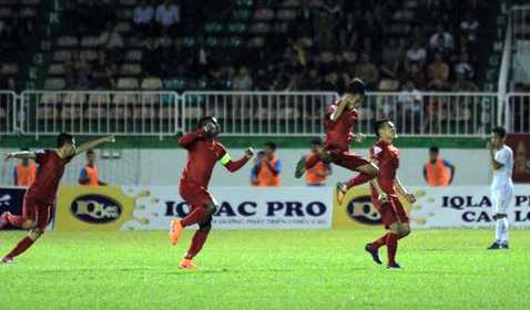 Ngọc Tân có pha lắc đầu điệu nghệ ghi bàn thắng ấn định chiến thắng 2-1 cho Hải Phòng trước HAGL ở vòng 2 V-League.
