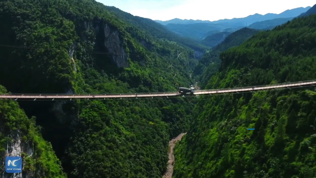 Video: Cầu treo bằng dây xích bắc qua hẻm núi sâu 300m ở Trung Quốc