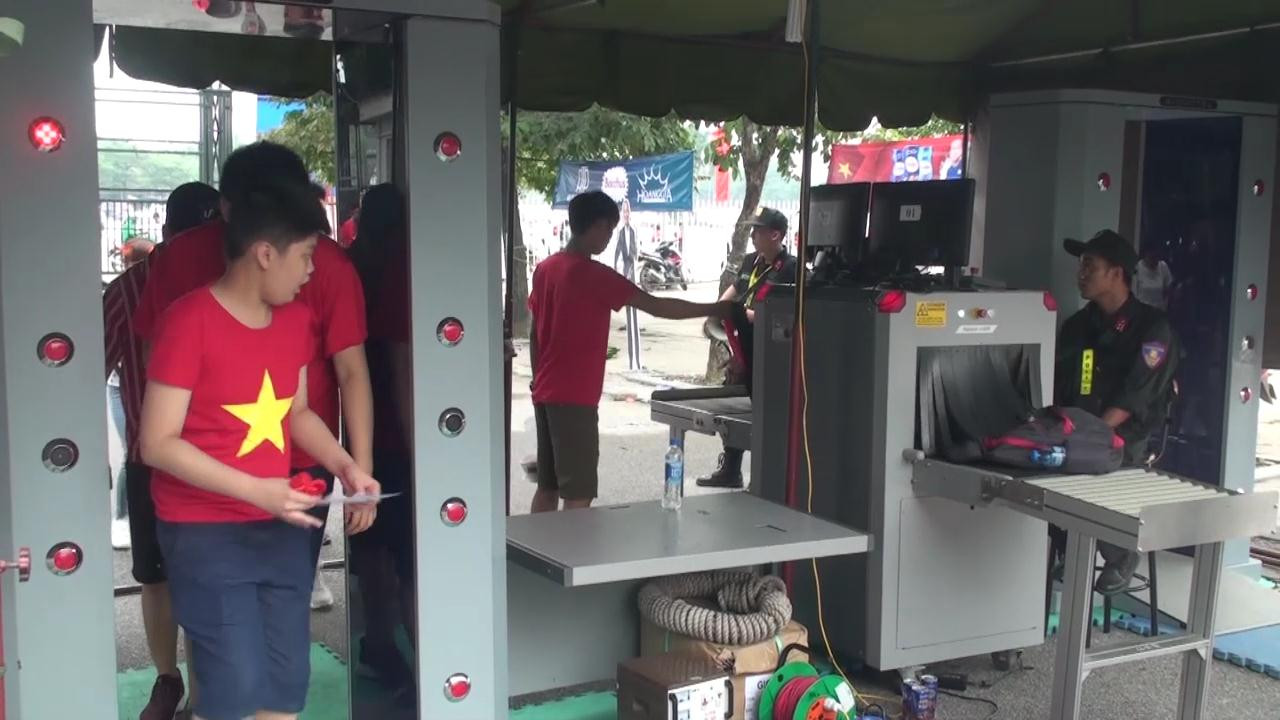 Video: CĐV phải đi qua máy quét để vào SVĐ Mỹ Đình chào đón Olympic VN