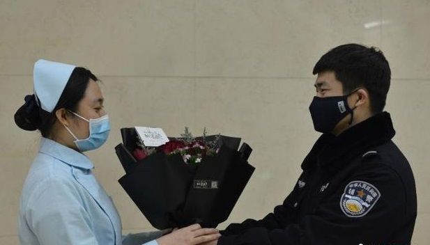Biết tin người yêu chuẩn bị vào khu cách ly đặc biệt điều trị cho bệnh nhân nhiễm virus corona, chàng cảnh sát vội vàng trao nhẫn cưới cho nữ y tá.