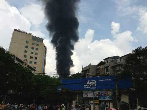 (VTC News)- Đám cháy dữ dội tại cây xăng đối diện bệnh viện 108 và cột khói đen bốc cao ở xa cũng có thể nhìn rõ.