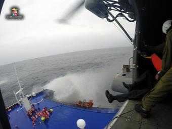 Một chiến dịch cứu hộ quy mô cả trên biển và trên không đã được triển khai từ tối 28/12. Tuy nhiên, thời thiết xấu kèm sóng to và gió mạnh đã cản trở các nỗ lực dập tắt đám cháy.