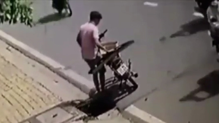 Video: Chạy xe ngược chiều rồi thản nhiên trộm nắp cống ở Bình Dương