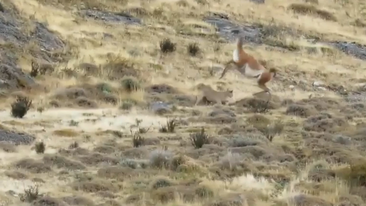 Chênh lệch về kích thước khiến báo sư tử không thể vật ngã lạc đà gặm cỏ một mình trong vườn quốc gia Torres del Paine.