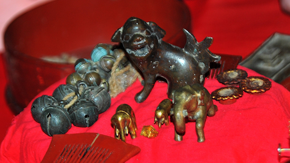 Bộ báu vật vua Hàm Nghi ban tặng tại xã Phú Gia (Hương Khê, Hà Tĩnh) gồm 2 con voi vàng, 1 con voi đồng, 2 thanh bảo kiếm… được người dân thay nhau gìn giữ.