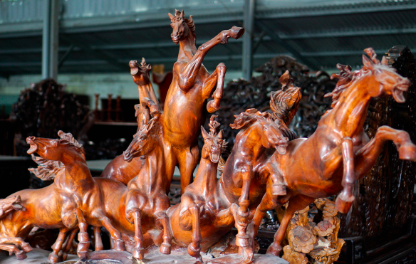 Từ khúc gỗ tìm được ở Tây Nguyên, anh Trần Đức Thuấn (47 tuổi, Hưng Yên) mang về chế tác thành bộ "Bát mã" được trả giá 7 tỷ đồng.