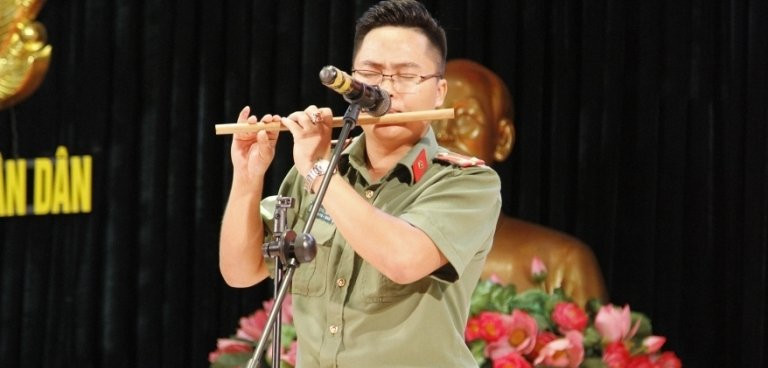Không chỉ say mê hoạt động Đoàn, Trung úy Nguyễn Tiến Thiệu (Phó Bí thư Đoàn thanh niên Học viện An ninh nhân dân (ANND) còn được nhiều người ngưỡng mộ bởi tài thổi sáo trúc cực đỉnh.