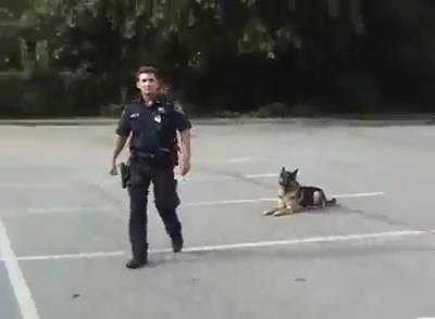 (VTC News) - Con chó tỏ ra rất thông minh khi làm theo hiệu lệnh của viên cảnh sát.