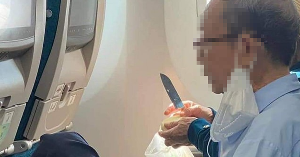 Hình ảnh một hành khách mang dao ra gọt hoa quả trên máy bay được cho là vi phạm nghiêm trọng quy định về an ninh, an toàn hàng không.