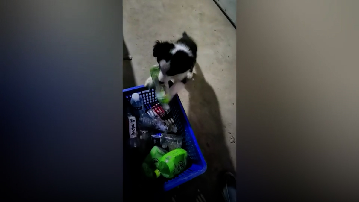 Chú chó con tên là Wintermelon đã được huấn luyện để nhặt những chai nhựa bỏ đi trên các con đường ở miền trung Trung Quốc.