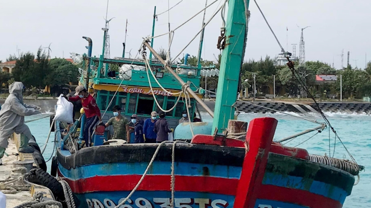 22h ngày 21/7, tàu cá cứu 4 ngư dân trên biển do anh Lê Thanh Toàn làm chủ đã cập bến tại Cảng cá TP Quy Nhơn, Bình Định.
