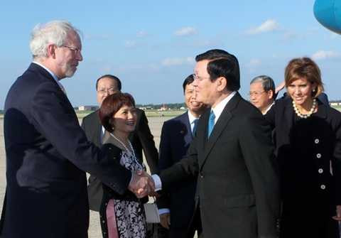| Chủ tịch nước Trương Tấn Sang tại sân bay quân sự Andrew (Ảnh: TTXVN) |