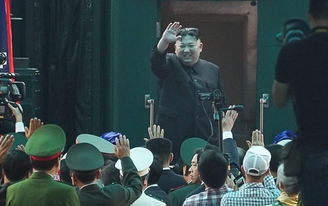 Chủ tịch Triều Tiên Kim Jong-un vẫy tay tạm biệt người dân tại ga Đồng Đăng (Lạng Sơn) trước khi bước lên đoàn tàu bọc thép để trở về nước, khép lại chuyến công du 5 ngày tại Việt Nam.