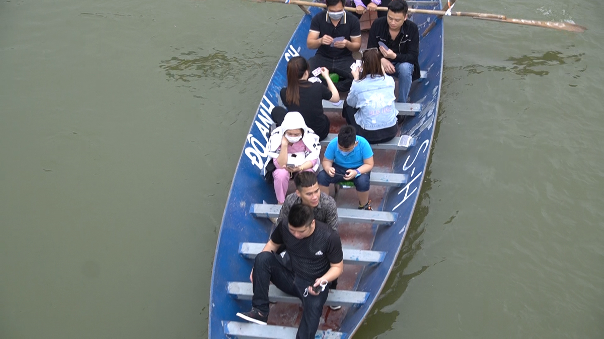 Mặc dù cơ quan chức năng liên tục phát loa nhắc nhở nhưng khá nhiều du khách đi trẩy hội chùa Hương vẫn không đeo khẩu trang để phòng chống dịch bệnh COVID-19.