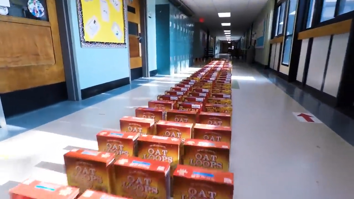 Thầy trò trường Long Beach Middle School ở New York (Mỹ) phá kỷ lục Guinness với chuỗi domino dài nhất dựng từ 6.391 hộp ngũ cốc.