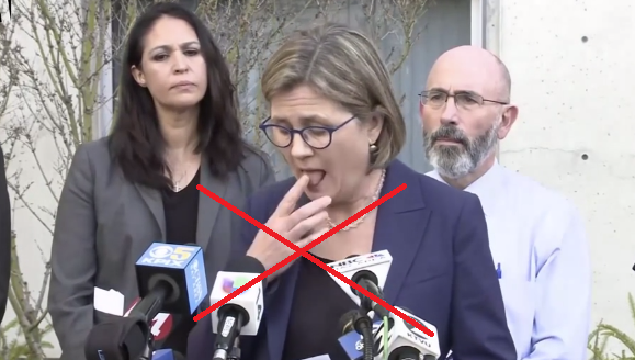 Tiến sĩ Sara Cody của Sở Y tế Santa Clara (Mỹ) cảnh báo người dân không sờ miệng để tránh Covid-19 nhưng chính bà lại liếm ngón tay để lật trang giấy.