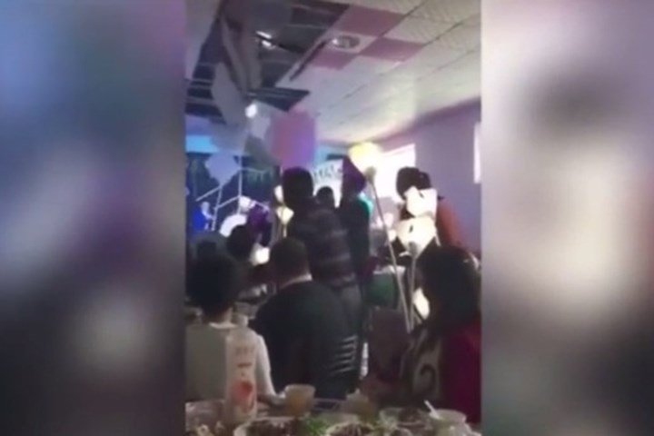 Video: Cô dâu tung hoa cưới làm trần nhà đổ sập