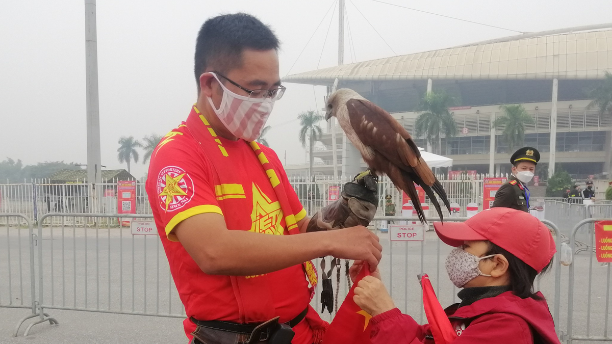 Chiều 16/11, anh Nguyễn Ngọc Luận (Đông Anh, Hà Nội) mang đại bàng đến sân Mỹ Đình cổ vũ tuyển Việt Nam.