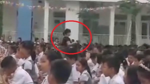 Trong buổi bế giảng năm học của Trường Tiểu học Lê Quý Đôn (quận Hà Đông, Hà Nội), dù bầu bí song cô giáo Nguyễn Thị Hướng vẫn liên tục đi từ đầu đến cuối hàng quạt tay cho các học sinh ngồi giữa sân trường.