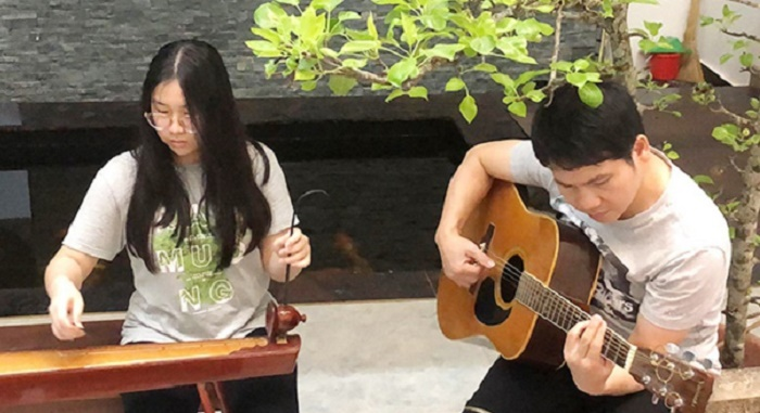 Vợ chồng ca sĩ Trọng Tấn đều rất ủng hộ niềm đam mê âm nhạc của các con. Nam ca sĩ cũng cầm đàn guitar, hòa tấu cùng con gái.